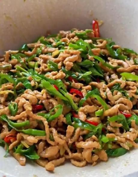 出锅装盘:一道色泽诱人、香辣可口的青椒牛肉丝就完成了。牛肉鲜嫩,青椒脆爽,搭配米饭食用,十分美味,而且制作过程快速简便,适合忙碌时制作。