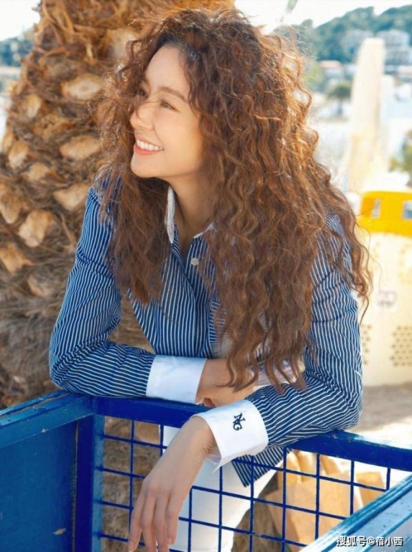 林心如新烫了羊毛卷年轻25岁,穿衬衫+小白裤,美得像换了个人