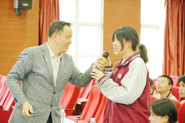 讲座穿插了热烈的互动环节。在李老师的激励下,多位学子勇敢登台,面对全场师生,铿锵有力地喊出自己心仪的大学和奋斗目标。“我要考上贵州大学!”“我的目标是520分!”……一声声激昂的呐喊,一次次热烈的掌声,将现场气氛推向高潮,展现了学子们坚定的决心与昂扬的斗志。