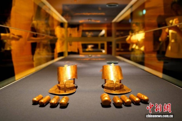 图为展出的埃及新王国时期的拖鞋和脚趾套。中新网记者 张祥毅 摄