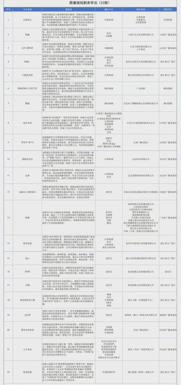 本次推荐片单紧扣大会“繁荣新大众文艺,共创新时代视听”的核心主题,设置七个特色单元,分别为跟着微短剧去旅行(50部)、跟着微短剧来学法(22部)、跟着微短剧来科普(7部)、跟着微短剧学经典(8部)、微短剧里看非遗(13部)、跟着微短剧去运动(8部)、微短剧+AIGC(8部),集中展现了2025年以来“微短剧+”行动计划推进过程中取得的丰硕成果。