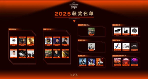 本届LPA继续坚持“重现场、重口碑、重潜力,用现场说话”的导向。奖项设置涵盖摇滚、Hip Hop、流行、民谣、另类、海外六大类赛道,并设立最佳现场、最具人气、最具潜力、最佳场地、最佳厂牌、最佳现场体验音乐节、年度音乐人、特殊贡献共八大奖项,最终诞生26位获奖者,全维度覆盖独立音乐演出生态的各个关键环节。