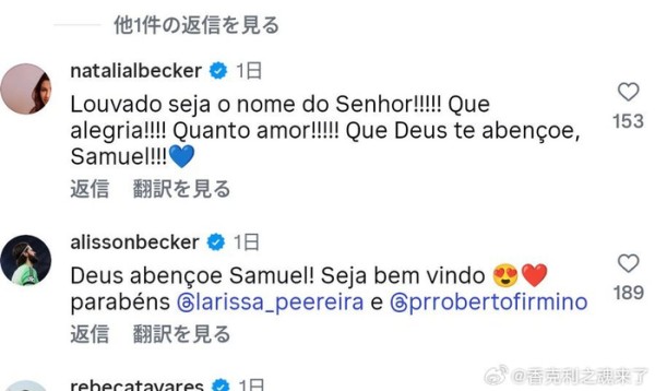 费米抱着刚出生的儿子好幸福啊 阿利森一家也送来祝福#利物浦#