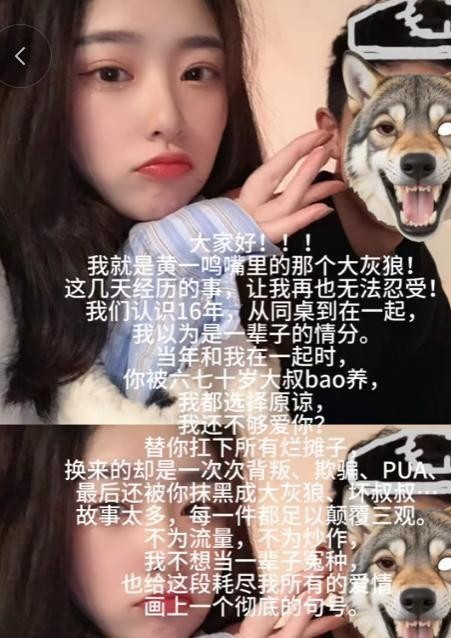 他当时虽然年纪小很懵,但还是决定支持,全程陪着黄一鸣去医院做产检。 他爆出的第一个猛料,是黄一鸣在和他恋爱期间,曾被一个年近60岁的男人包养。
