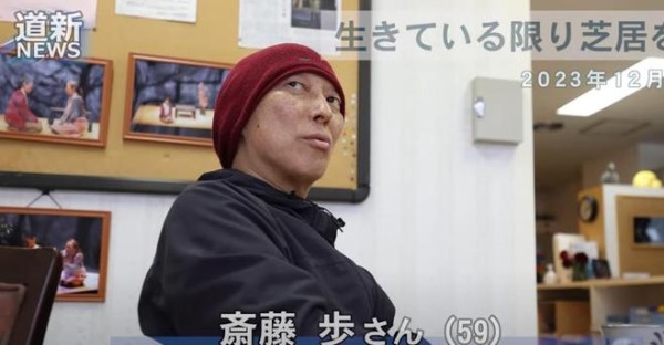 北海道剧团的理事长透露,自己全程陪伴参与斋藤步的癌症纪录片拍摄,他的癌症进入晚期非常可怕,甚至连走路都无法直立行走,只能由家人搀扶慢行。